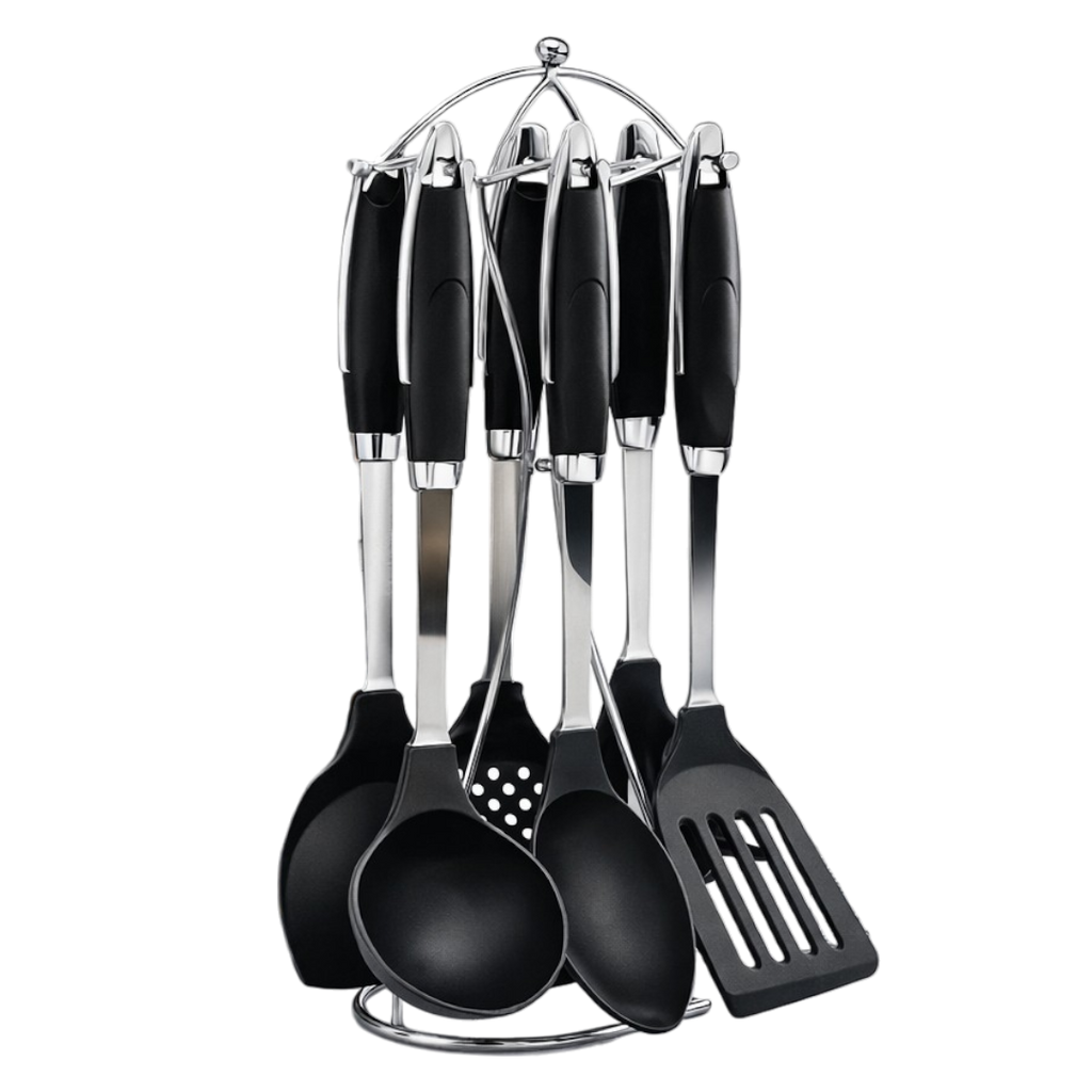 Set de cucharones para cocinar metal plastico silicon